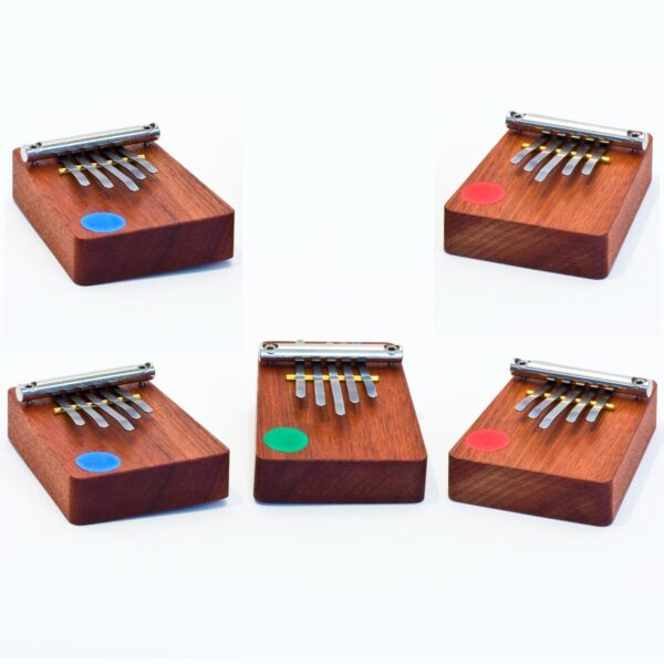 A set of five 5-note kalimbas, each tuned to different complimentary chords that can simply make beautiful complex songs.