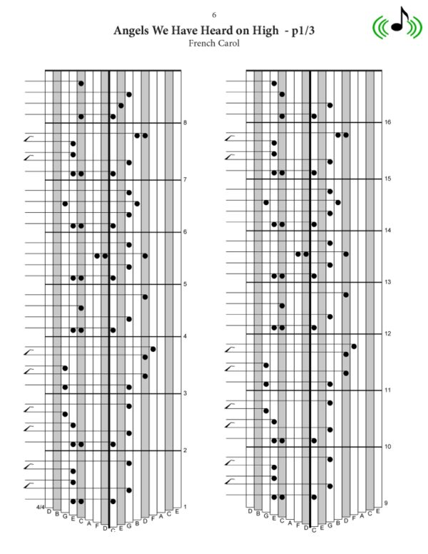 This 48 page book provides the tablature for arrangements of Christmas carols as performed by Mark Holdaway. A QR code will quickly link you to the web page with the sound recordings for each song in this book.
